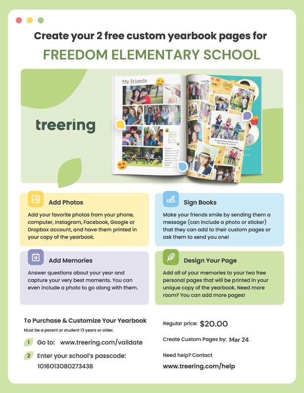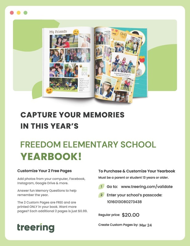 Freedom Elementary 2022-2023 Yearbooks are available for purchase until March 24th.