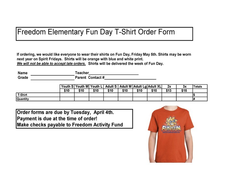 FUN DAY T-SHIRT ORDER FORM